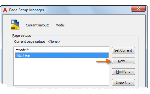 برای ایجاد یک page setup جدید ، روی کلید New کلیک کنید و نام page setup جدید را وارد کنید. کادر محاوره ای Page Setup بعدی ، شبیه به کادر محاوره ای Plot به نظر می رسد. تمام گزینه ها و تنظیمات را که می خواهید ذخیره کنید ، انتخاب کنید.