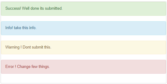 <div class = "alert alert-danger">Error ! Change few things.</div>