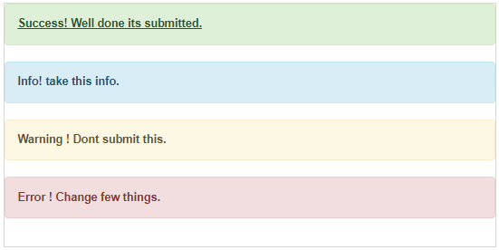 <div class = "alert alert-success">Success! Well done its submitted.</div>