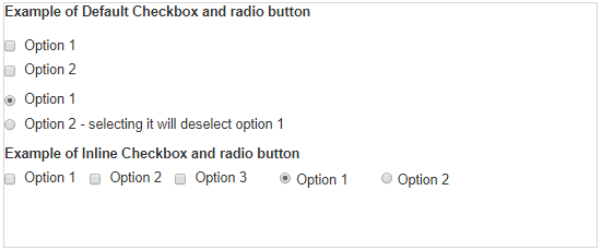 - از کلاس checkbox-inline. یا radio-inline. برای مجموعه ای از checkbox ها یا radio ها جهت اعمال کنترل ها در همان خط استفاده می کنیم.
