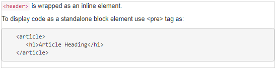 باید اطمینان حاصل شود که وقتی از تگ های <pre> و <code> استفاده می کنیم ، از انواع Unicode برای تگ های باز و بسته استفاده می نماییم : < و > .