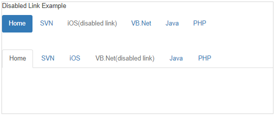 اگر برای هر کلاس .nav ، کلاس disabled. را اضافه کنیم ، این کار موجب ایجاد یک لینک خاکستری می شود که وضعیت hover: آن نیز غیرفعال می باشد ، همان طور که در مثال زیر نشان داده شده است :