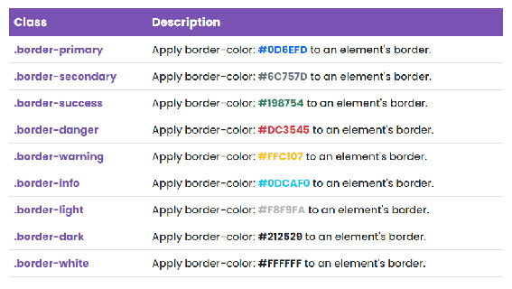 در زیر کلاس های کمکی برای ویژگی border-color بر اساس تم های بوت استرپ را می بینید: