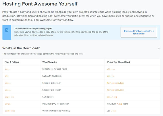 این تم نیاز به دانلود فایل های منبع Font Awesome از طریق صفحه دانلود آن دارد تا بتوانیم آیکون هایی را به پروژه خود اضافه کنیم. پس از دانلود ، پوشه webfonts را در داخل پوشه اصلی پروژه و فایل all.css در پوشه CSS پروژه کپی کنید.