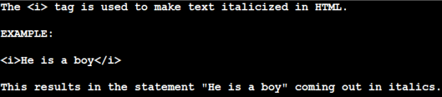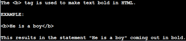 در کد HTML خام ما داریم : <b>He is a boy</b> که مرورگر آن را به این صورت ترجمه می کند: He is a boy .