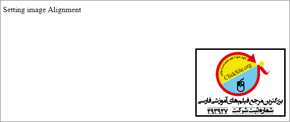 به طور پیشفرض، تصویر در سمت چپ(left) صفحه قرار می گیرد، اما شما می توانید از ویژگی align برای تنظیم آن در مرکز (center) یا راست (right) استفاده کنید.