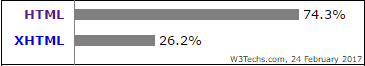 درصد وب سایت هایی که از انواع زیرمجموعه های HTML استفاده می نمایند. نکته: یک وب سایت ممکن است از بیش از یک زیرمجموعه HTML استفاده نماید.  |