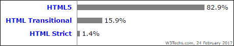 از میان زیر مجموعه ها ، HTML5 توسط 82.9 درصد از همه وب سایت هایی که از HTML استفاده می کنند استفاده می شود.