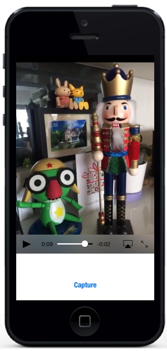 اگر اپ را بر روی iPhone کامپایل و اجرا نماییم ، باید بتوانیم video camera interface را پس از ضربه زدن بر روی کلید “Capture” ببینیم. هنگامی که ضبط ویدئو تمام شد ، به طور خودکار ، ویدئو ضبط شده در صفحه اصلی ، پخش می شود.