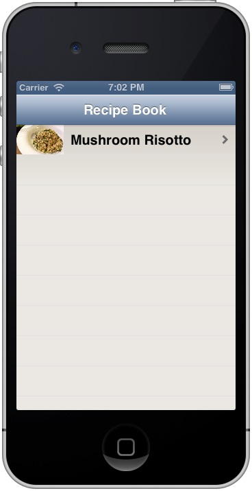 ابتدا ، می خواهیم که پس زمینه view controller را با تصویر موردنظر خود ، تغییر دهیم. اگر شما ، پروژه Xcode را باز نمایید ، خواهید دید که تصاویری را ما برای شما ، اضافه کرده ایم. برای تنظیم تصویر پس زمینه ، فایل “RecipeViewController.m” را باز کرده و کد زیر را به انتهای متد “viewDidLoad” اضافه می کنیم: