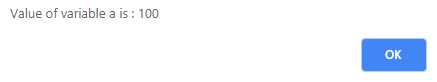 alert("Value of variable a is : " + a );