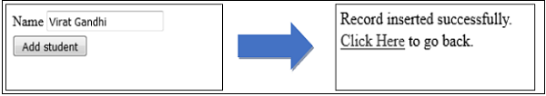 echo '<a href = "/insert">Click Here</a> to go back.';
