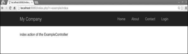 مرحله 4 - آدرس http://localhost:8080/index.php را در آدرس بار مرورگر تان، تایپ کنید، مشاهده خواهید کرد که کنترلرِ پیش فرضتان example controller می باشد.