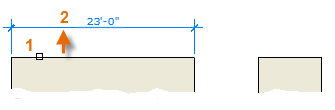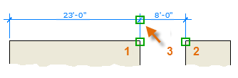 برای ابعاد 8’-0” زیر از روش دیگری استفاده کنید: دستور DIM را شروع کنید، روی دو نقطه پایانی کلیک کنید (1 و 2) و سپس محل خط dimension را کلیک کنید (3). برای تنظیم کردن خطوط dimension نقطه 3 به انتهای خط dimension که قبلا ساخته شده است ، متصل کنید.