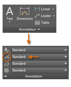 برای باز کردن Dimension Style Manager ، روی دکمه نشان داده شده کلیک کنید. شما می توانید سبک های dimension را ایجاد کنید که تقریباً با هر استانداردی مطابقت دارند ، اما شما نیاز به زمان دارید تا آنها را مشخص کنید. به همین دلیل ، شما باید سبک های dimension را که در یک یا چند فایل الگو تمپلت طراحی ایجاد می کنید ، ذخیره نمایید.