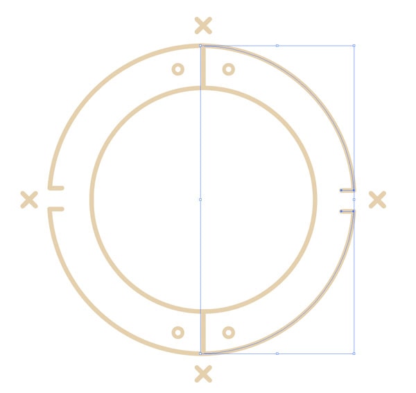 - 2.6 ضربدر و دایره را با هم انتخاب کرده و برای بار دوم روی دایره کلیک کنید تا فعال شود. خط ضخیم تر از صلیب ها خواهد بود.