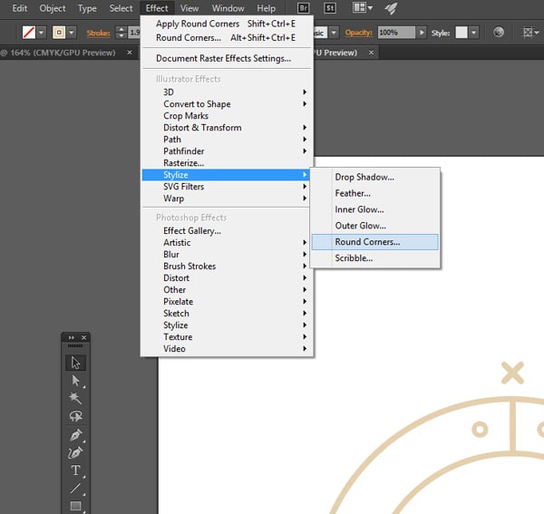 - 2.3 در پانل stroke مانند تصویر زیر Round Cap و Round Join را انتخاب کنید.