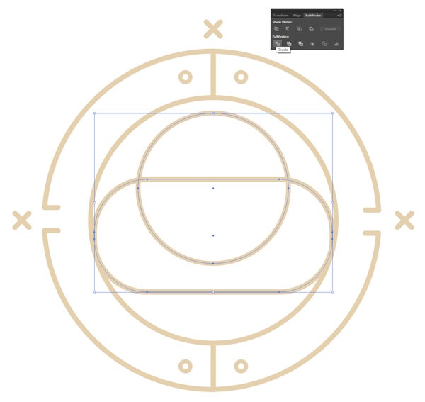 با انتخاب هر دو خط و بزرگترین دایره ، از پنل Pathfinder استفاده کنید و روی تقسیم کلیک کنید.