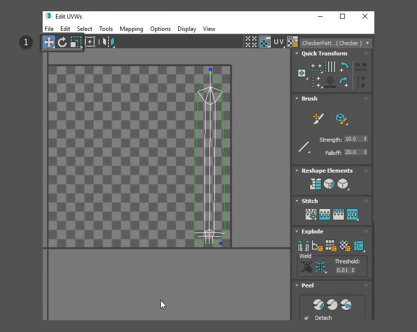UVW ها را در پنجره Edit UVWs حرکت دهید تا مطمئن شوید که شکل تیغه ها به خوبی روی یکدیگر قرار گرفته اند.