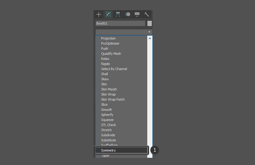 در Modifier List ، به پایین بروید و Symmetry را انتخاب کنید.