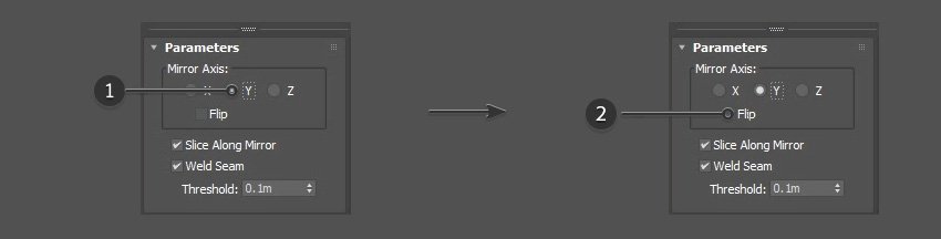 با انتخاب پارامترهای مناسب اطمینان حاصل کنید که symmetry modifier نتایج درستی را به شما می دهد. همچنین می توانید اصلاح کننده Unwrap UVW را دوباره اعمال کنید تا بررسی کنید که UVW ها مانند تیغه روی یکدیگر قرار گرفته اند یا نه.
