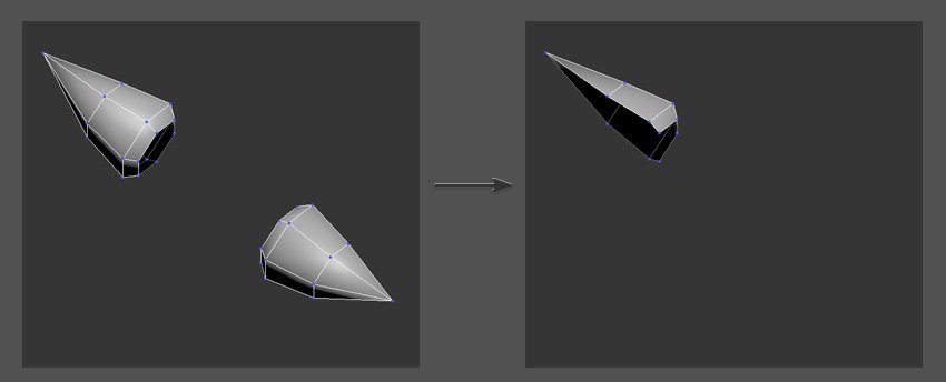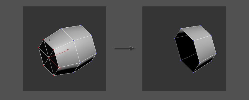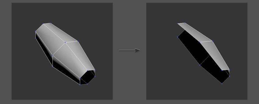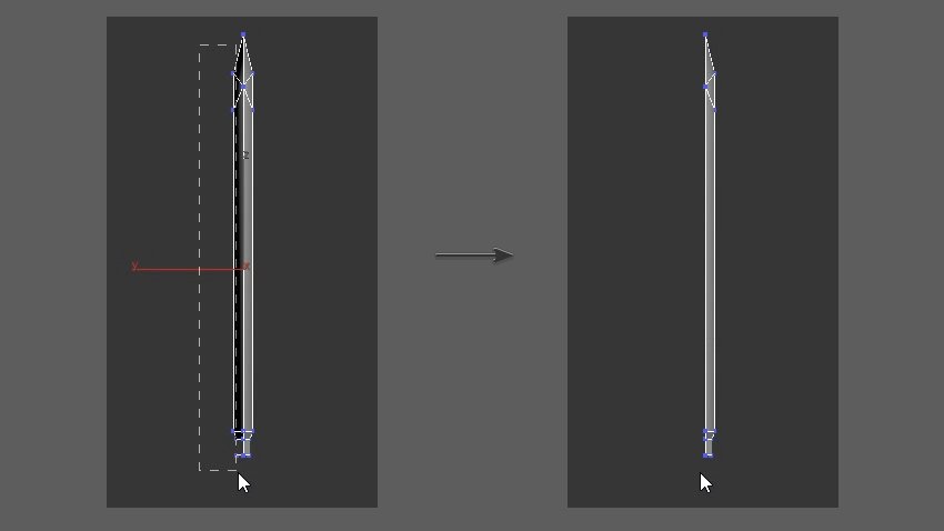 با استفاده از ابزار Vertex Selection، نیمی از تیغه را حذف کنید.