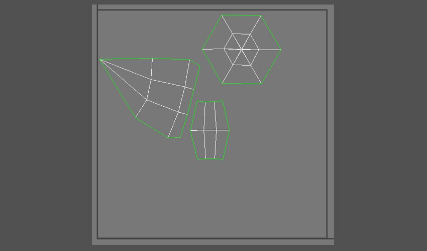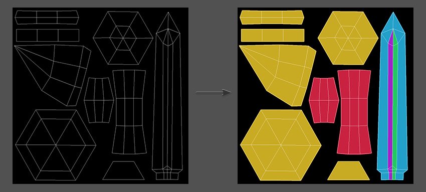 یک لایه جدید در زیر UVs وcolour map ایجاد کنید تا بتوانید اشکال را به طور موثر انتخاب کنید.