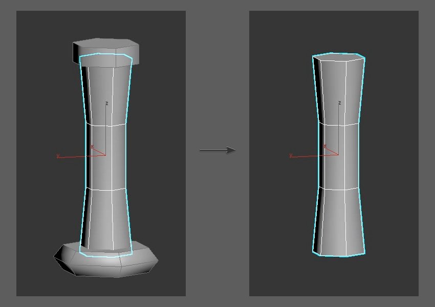شیپ لوله میانی را انتخاب کنید و با استفاده از ابزار Vertex Selection ، نیمی از شکل را انتخاب و حذف کنید.