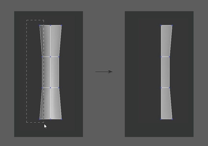 شیپ وسط را انتخاب کرده و با استفاده از ابزار Vertex Selection ، نیمی از شکل را انتخاب و حذف کنید.