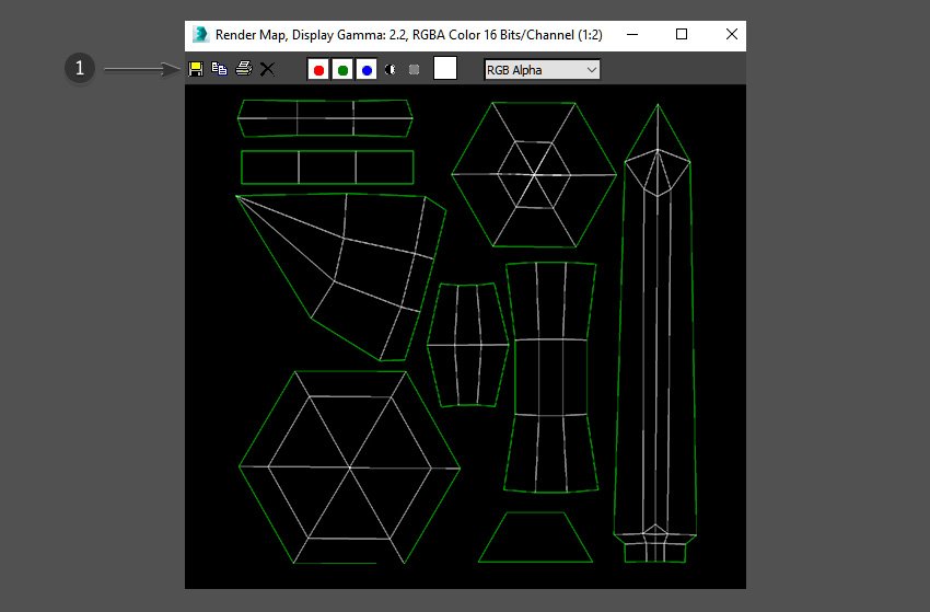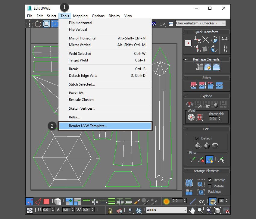 هنگامی که از چیدمان اشعه ماوراء بنفش راضی هستید به Tools > Render UVW Template بروید.