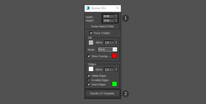 ابعادی را که می خواهید نقشه UV به آنها ارائه شود، انتخاب کنید و سپس روی دکمه Render UV Template کلیک کنید.