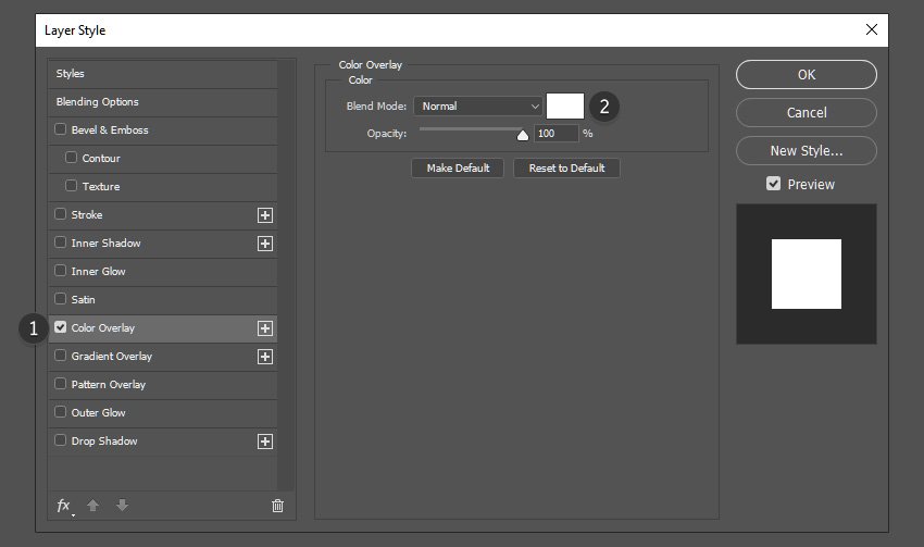 Color Overlay را انتخاب کرده و رنگ سفید را انتخاب کنید.