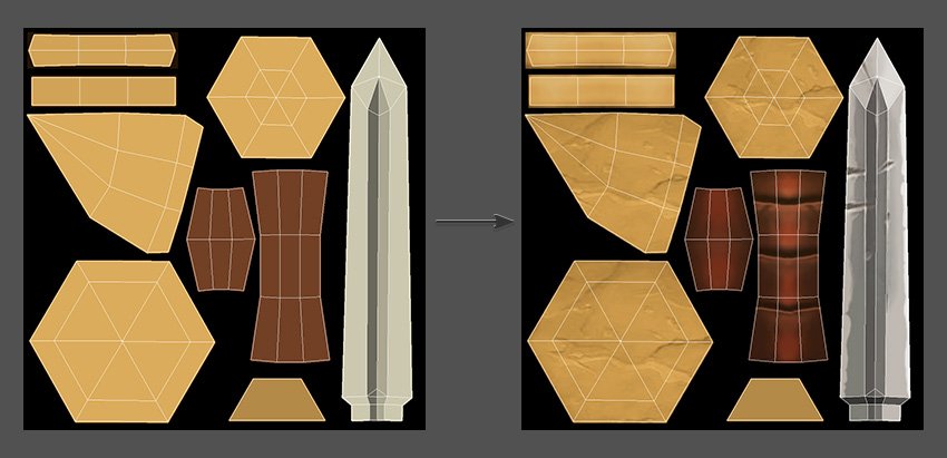 این باید نقشه بافت را بر روی مدل شمشیر سه بعدی اعمال کند.