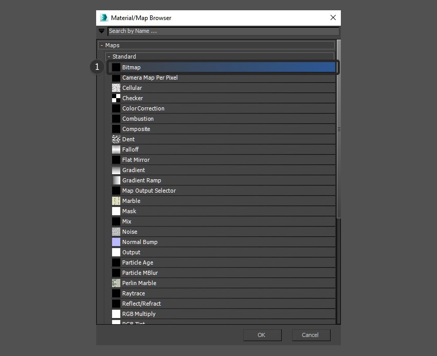 به بالایMaterial/Map Browser بروید و Bitmap را انتخاب کنید.