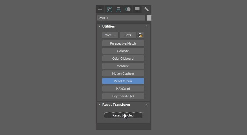 اطمینان حاصل کنید که قسمت شمشیر را که می خواهید باز کنید، (تیغه ، دسته ، محافظ دست و غیره) را انتخاب کرده باشید. به برگه Utilities بروید و روی دکمه Reset XForm و سپس روی دکمه Reset Selected کلیک کنید.
