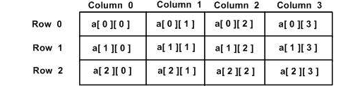 در این مثال یک متغیر از نوع ارایه دو بعدی از نوعint شامل سه سطر و سه ستون تعریف شده است.