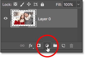 حالا که دوباره عکس خود را دیدیم ، بیایید یک سایه به حاشیه تصویر خود اضافه کنیم. ابتدا بر روی لایه تصویر (Layer 0) در پنل Layers کلیک کنید تا آن را انتخاب کنید: