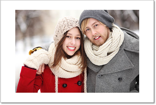 و اکنون ، تصویر در جلوی لایه سفید Solid Color fill در سند ظاهر می شود و افکت حاشیه عکس ما را ایجاد می کند: