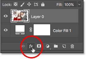 سپس ، روی آیکون Layer Styles (آیکون “fx" ) در پایین پنل Layers کلیک کنید: