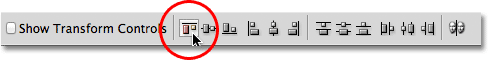 سپس ، روی گزینه Align Top Edges در نوار Options کلیک می کنیم: