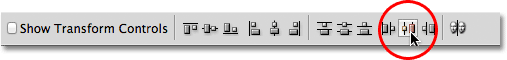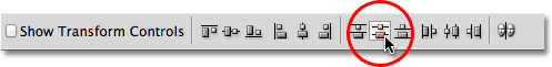 و در آخر ، روی گزینه Align Horizontal Centers در نوار Options کلیک می کنیم: