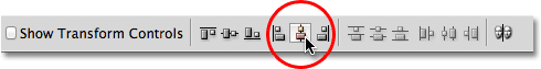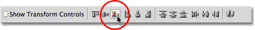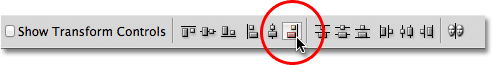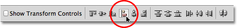 می خواهیم لبه های پایین این لایه ها را همتراز کنیم ؛ بنابراین روی گزینه Align Bottom Edges در نوار Options کلیک می کنیم: