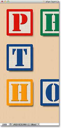 این کار ، بلوک ها را به صورت افقی با لایه Background همتراز می کند و آنها را در مرکز سند قرار می دهد: