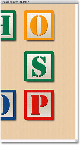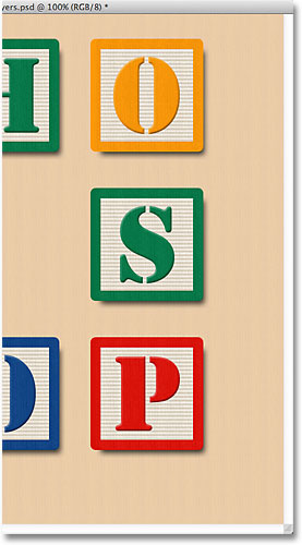 در این جا ، سندی را مشاهده می کنید که روی صفحه فتوشاپ خود باز کرده ایم و برخی بلوک های چوبی را در این سند مشاهده می کنید: