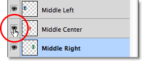 در آخر ، با کلیک بر روی آیکون قابلیت مشاهده ، لایه Middle Center را نیز در پنل Layers روشن می کنیم: