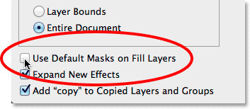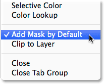 سپس ، در منویی که ظاهر می شود ، گزینه ای را که می گوید Add Mask by Default ، می بینید. علامت کنار نام آن به ما می گوید که فعلاً گزینه فعال است. برای غیرفعال کردن آن روی گزینه کلیک کنید:
