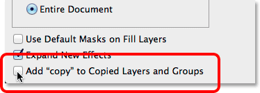 با غیرفعال کردن این گزینه ، دفعه دیگر که نسخه هایی از یک لایه (یا یک گروه لایه) را ایجاد می کنید ، کلمه "Copy" به نام ها اضافه نمی شود: