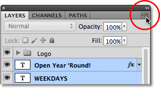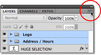 با انتخاب تمام لایه های مورد نظر ، روی آیکون منو در گوشه سمت راست بالای پنل Layers کلیک کنید (در نسخه های قبلی فتوشاپ ، آیکون منو به صورت یک فلش کوچک به نظر می رسد):