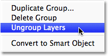 سپس ، گزینه Ungroup Layers را از منوی ظاهر شده انتخاب کنید: