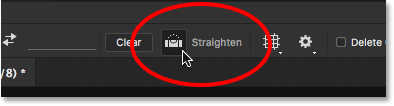 سپس ، در نوار Options ، دوباره ابزار Straighten را انتخاب می کنیم: